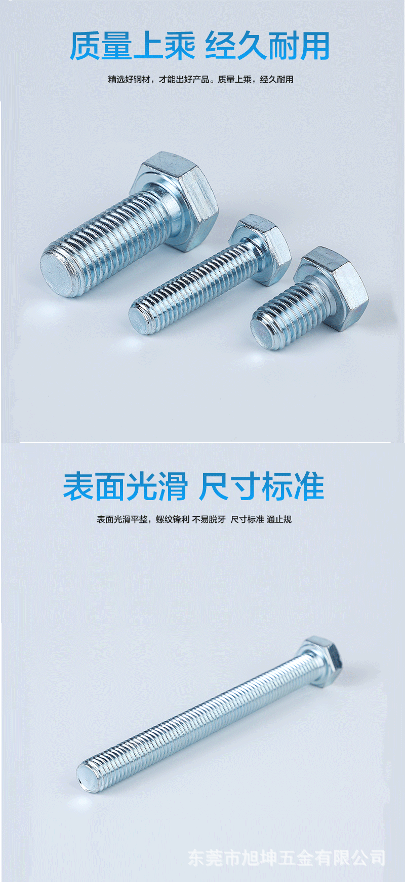 4.8级 8.8级 10.9级 12.9级 镀蓝白锌 碳钢 外六角头螺栓 DIN933