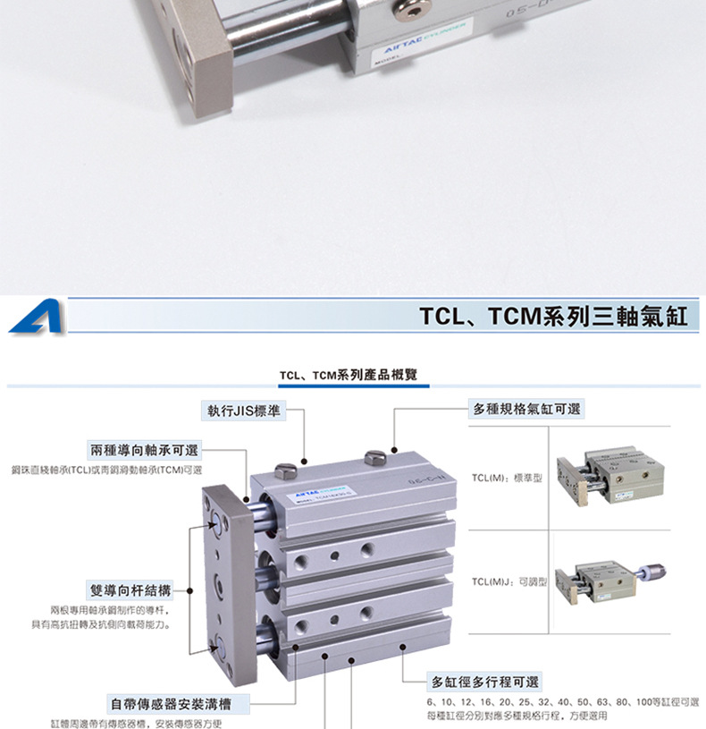 亚德客三轴气缸TCL12/16/20/25/32/40/50/63X10X20X30X40X50X60S