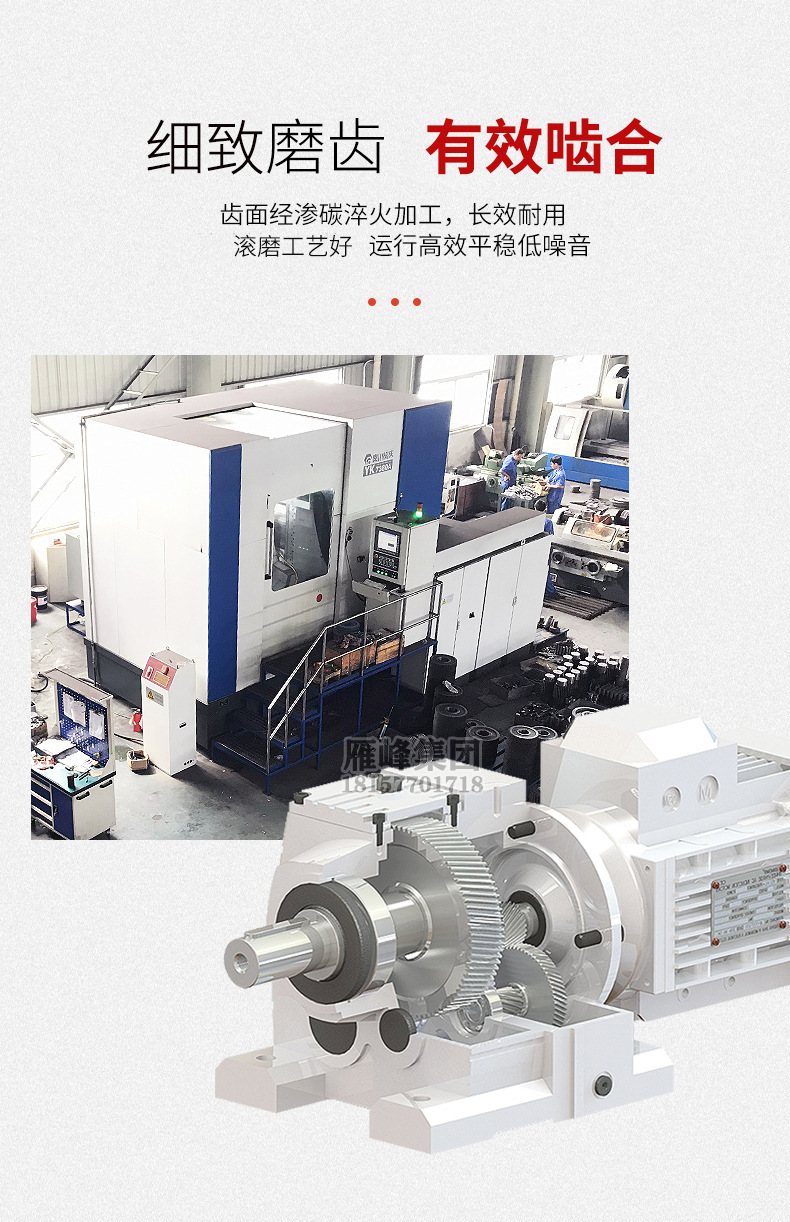 本厂采用带筋的高刚性箱体,好的合金钢齿轮,并且齿轮表面经渗碳淬火,齿面经高准确度磨齿加工,使传动平稳噪声低,承载能力大,耗能低,传动效率高,温升低寿命长等特点。