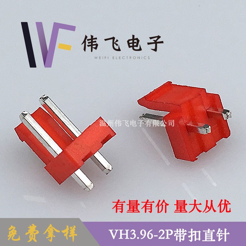 伟飞VH3.96-2P直针红色针座 VH-2A立式接插件 3.96mm间距连接器
