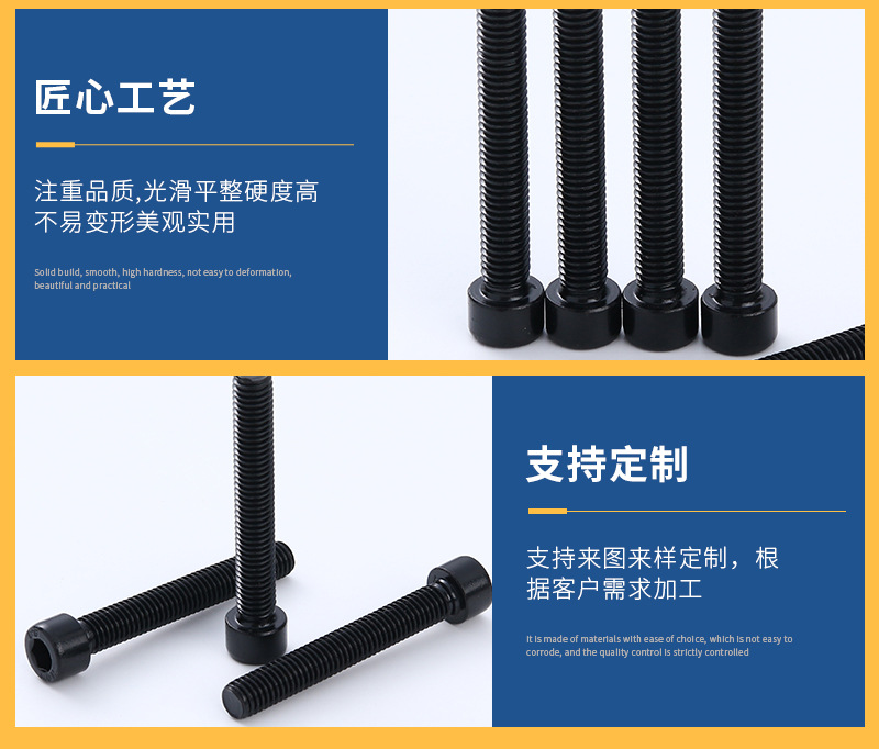 高强度杯头内六角螺栓圆柱头黑色内六角螺丝钉8.8级内六角螺栓