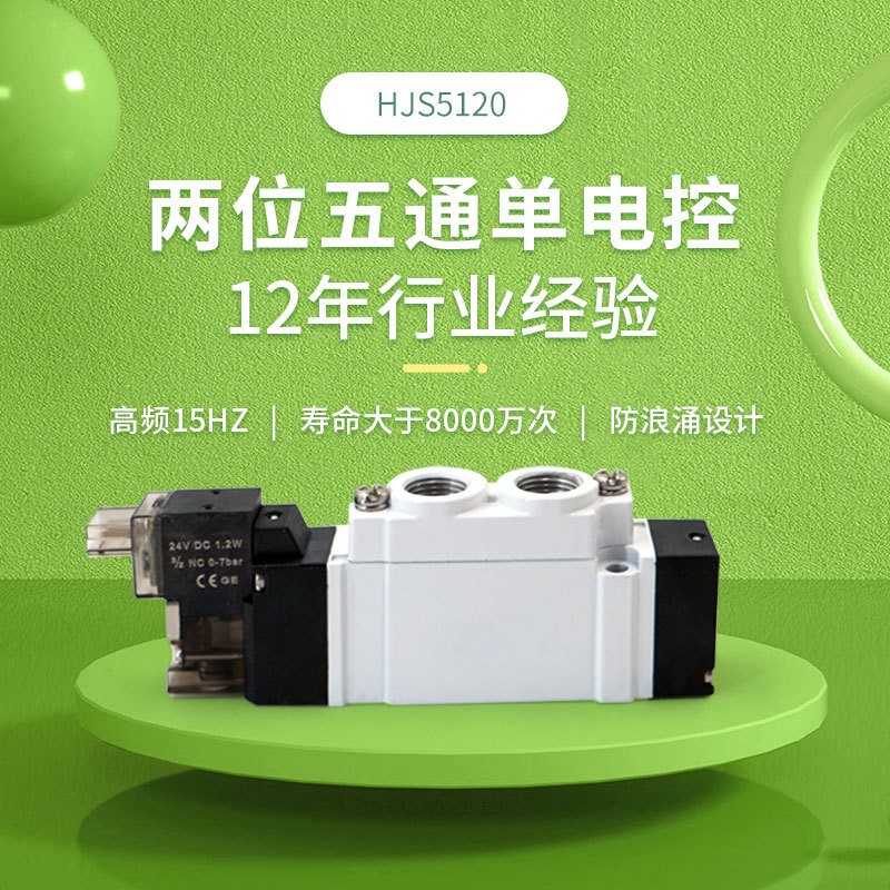 亨嘉 5120两位五通单电控电磁阀高速稳定电磁阀寿命大于8000万次 1-999个
