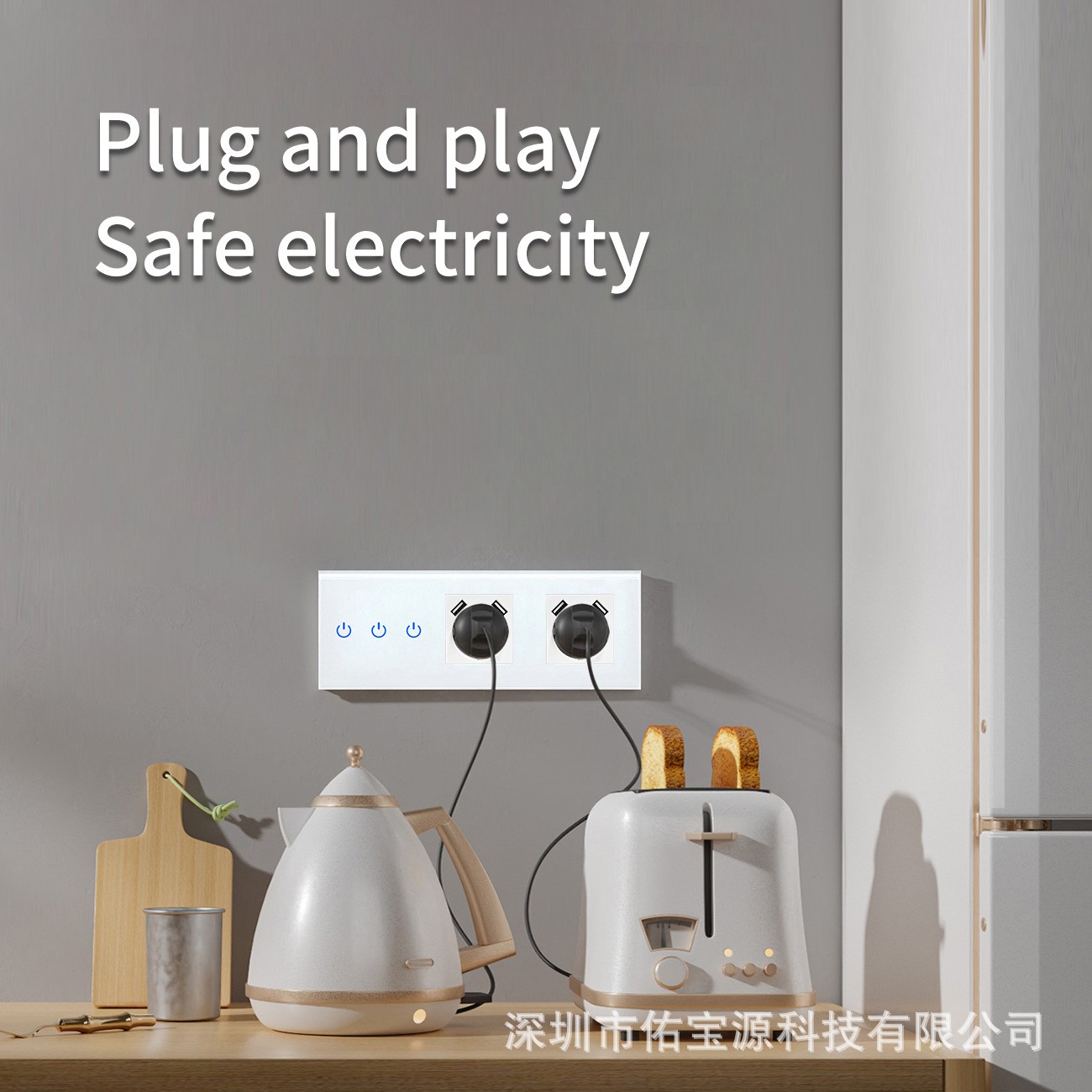 外贸欧标228型触摸开关插座黑白灰钢化玻璃面板暗装插座开关组合
