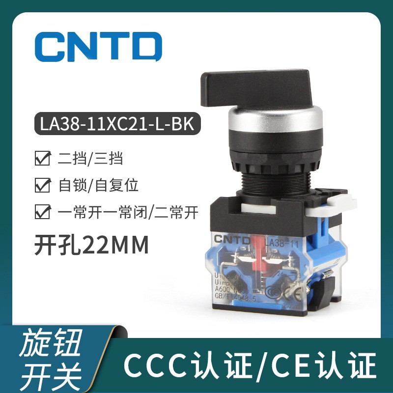 CNTD昌得电气按钮开关LA38-11XC21-L旋钮按钮信号灯自锁/自复位