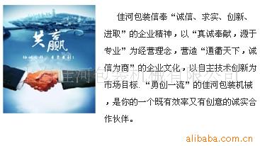 上海佳河包装机械有限公司位于中国经济中心与重要港口城市上海。本公司专业从事包装机械的研发、生产、销售及服务一体的现代化企业。公司主要产品有:真空机、封口机、收缩机、灌装机、打包机、打码机、喷码机、杯盒封盖机、吸塑机、贴体机等10多种系列60多个产品,产品广泛适用于食品、保健品、医药、农药、化工、玩具、日化及五金制品等行业。并可根据客户的要求,定做客户所需的产品,以满足市场需求。同时提供包装设备所用的各种耗材。公司秉承:以“质量赢市场,靠服务塑品牌”的原则深受广大客户的好评和信赖。公司产品不仅畅销国内市场,并且远销世界各地。