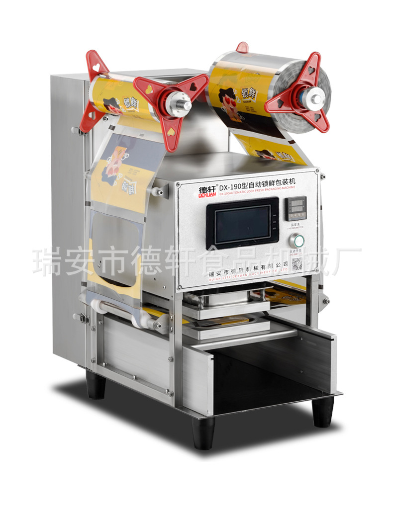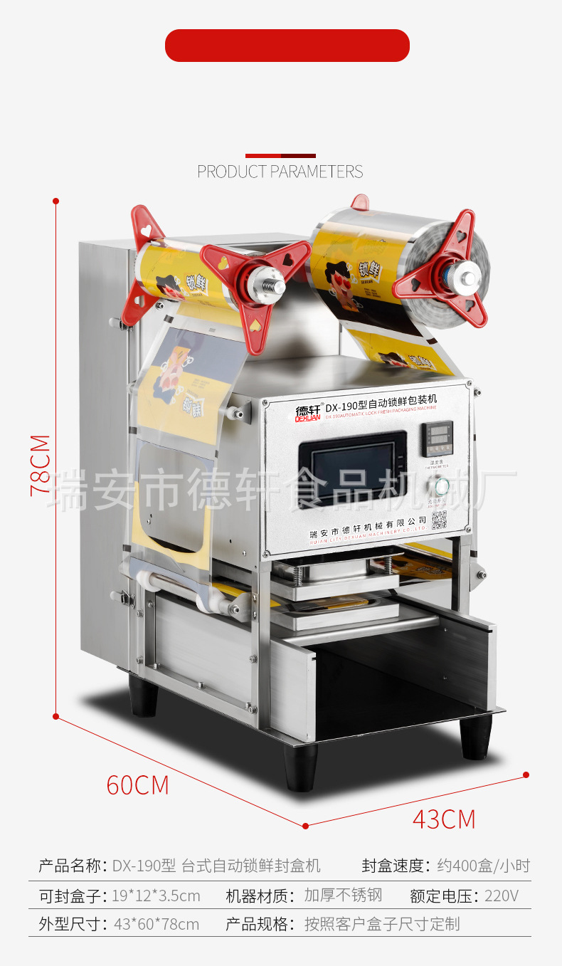 德轩牌全自动周黑鸭封口机卤味铝箔盒外卖打包 鸭货锁鲜快餐包装