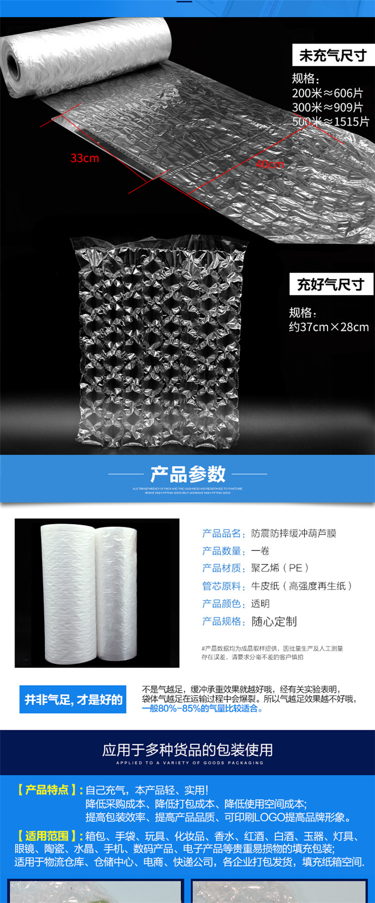 40*30cm葫芦膜300米充气气垫膜缓冲防震物流包装填充葫芦球气泡膜