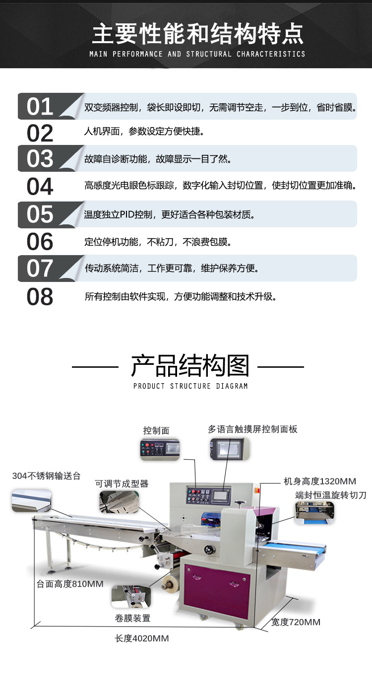 全自动枕式包装机硅胶制品套袋包装蔬菜水果自动套袋封口包装机