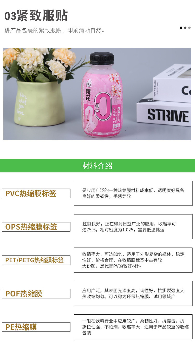 彩印透明热收缩膜标签饮料瓶身收缩膜pet静电膜标签logo