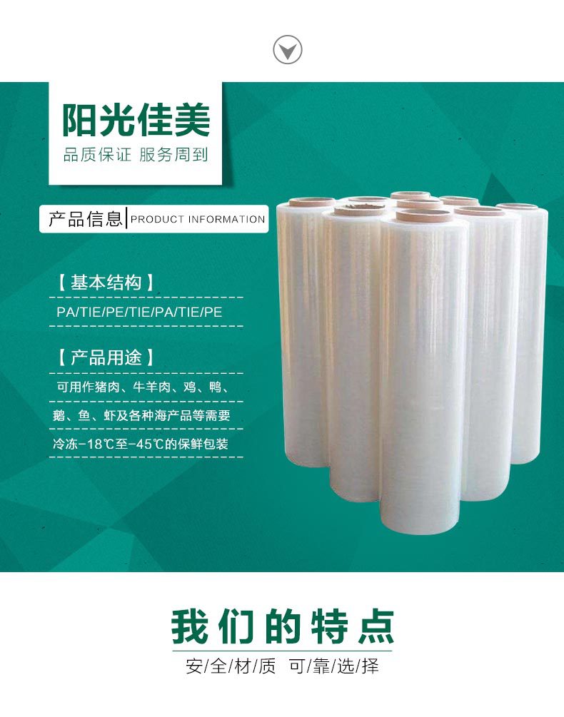 EVOH高阻隔塑料薄膜七层共挤膜可蒸煮耐低温防骨刺真空包装拉伸膜