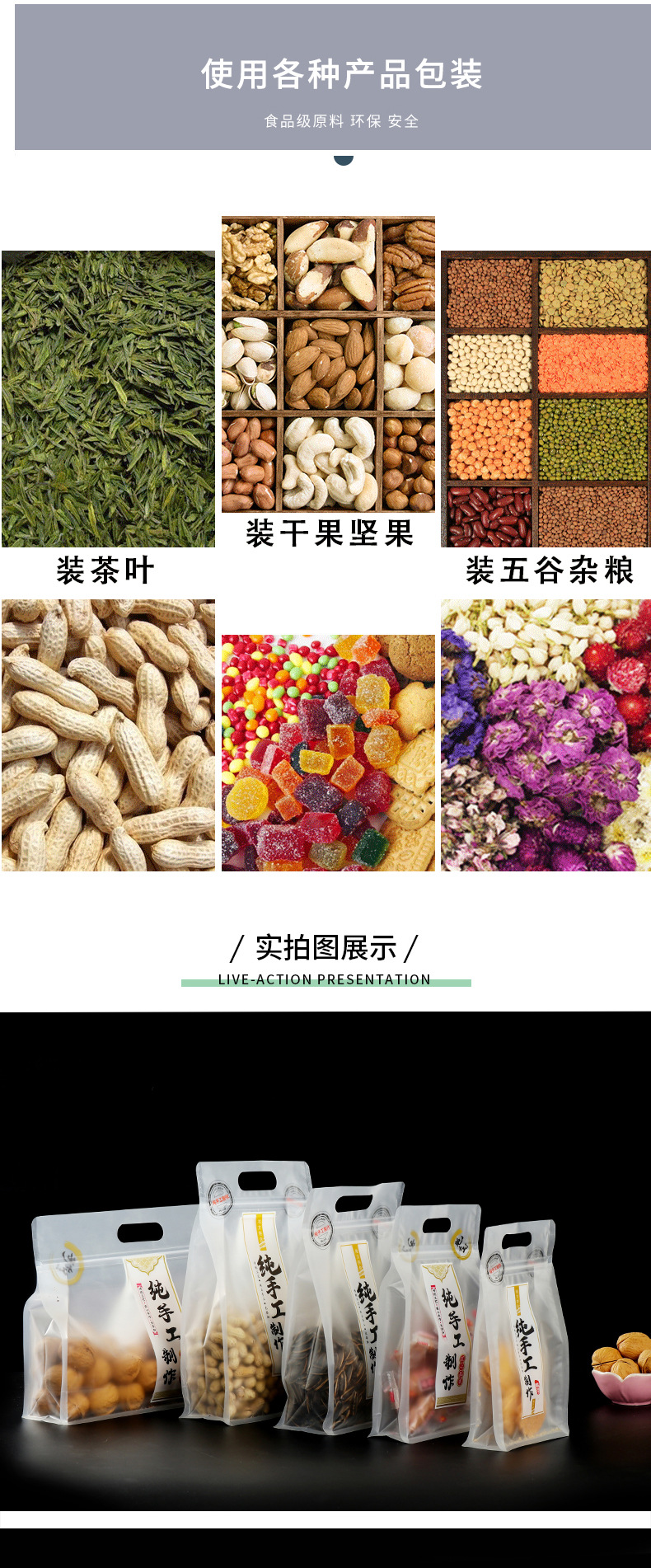 纯手工手提自立袋透明磨砂饼干糖果袋食品坚果自封塑料包装袋子
