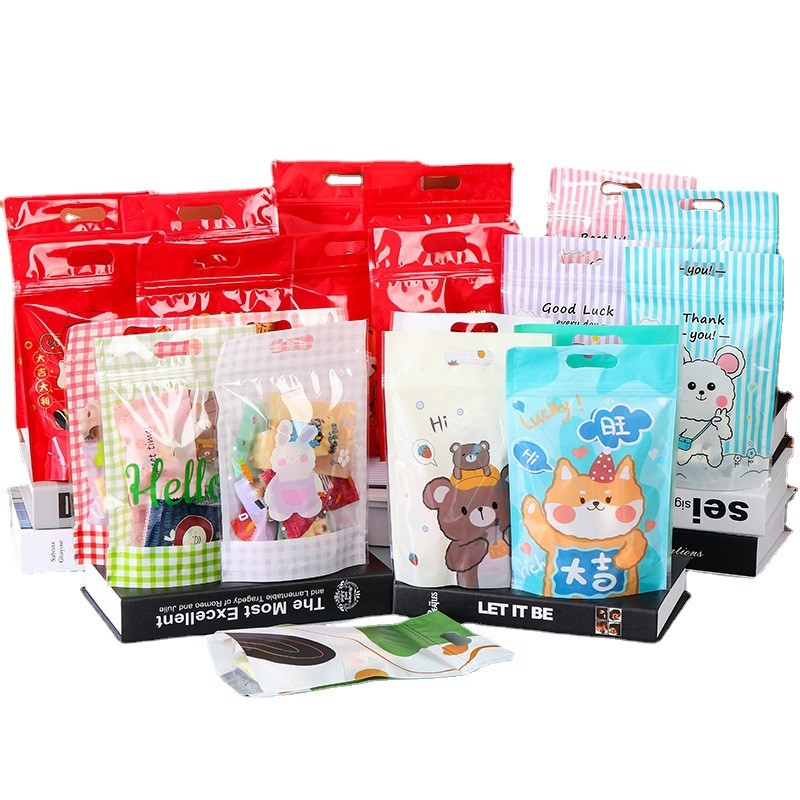 义乌厂家批发奶茶熊礼品袋可爱雪花酥自封袋烘焙糖果饼干自立袋