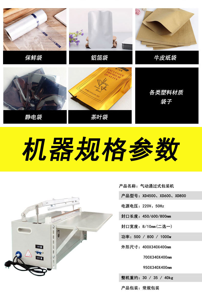 | 封口宽度 | 600mm | 薄膜厚度 | 可调 | 耗用功率 | 800W |