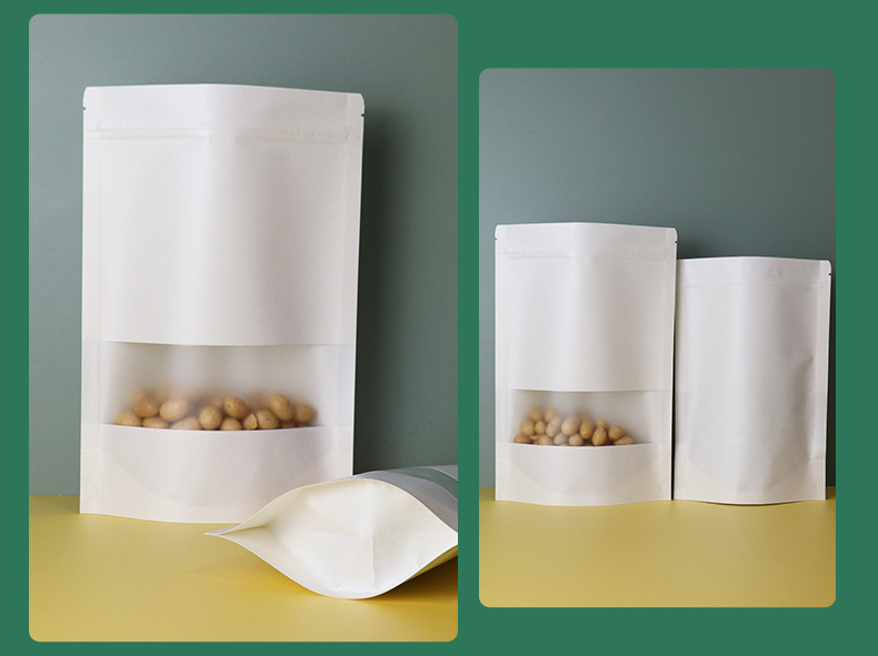 茶叶零食密封拉链食品包装袋 干果磨砂开窗自立自封白色牛皮纸袋