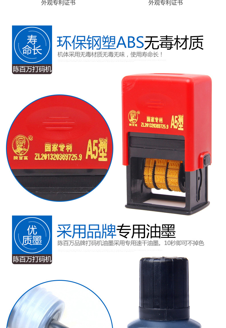 陈百万手动打码机喷码机泡沫箱手动打码机日期打码机