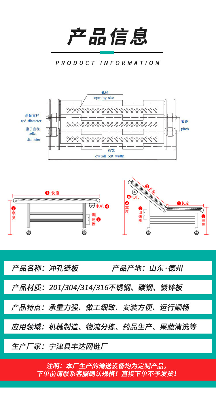 排屑机链板304不锈钢冲孔链板 厂家直供核桃清洗烘干链板输送链板