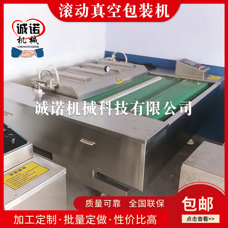 滚动型真空包装机的主要作用是除氧,以有利于防止食品变质,其原理也比较简单,因食品霉腐变质主要由微生物的活动造成,而大多数微生物(如霉菌和酵母菌)的生存是需要氧气的,而真空包装就是运用这个原理,把包装袋内和食品细胞内的氧气抽掉,使微生物失去生存的环境。实验证明:当包装袋内的氧气浓度≤1%时,微生物的生长和繁殖速度就急剧下降,氧气浓度≤0.5%时,大多数微生物将受到抑制而停止繁殖。(注:真空包装不能抑制厌氧菌的繁殖和酶反应引起的食品变质和变色,因此还需与其它辅助方法结合,如冷藏、速冻、脱水、高温杀菌、辐照灭菌、微波杀菌、盐腌制等。)