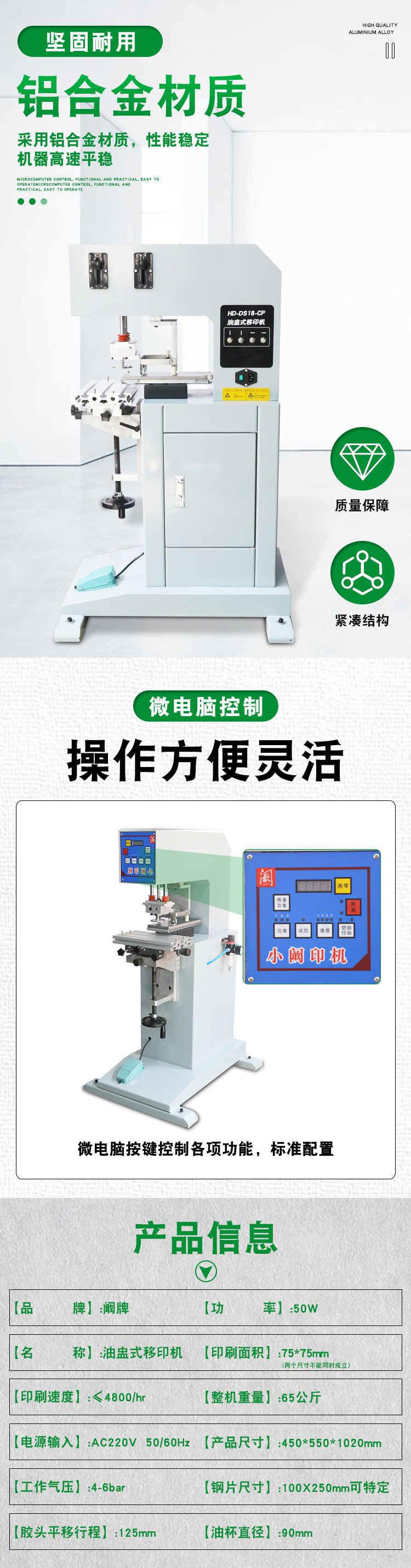 | 移印机类型 | 油墨移印机 | 印刷颜色 | 单色 | 应用领域 | 汽车,文具,广告,日用品,礼品,电子,玩具,仪器 |