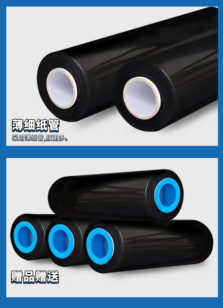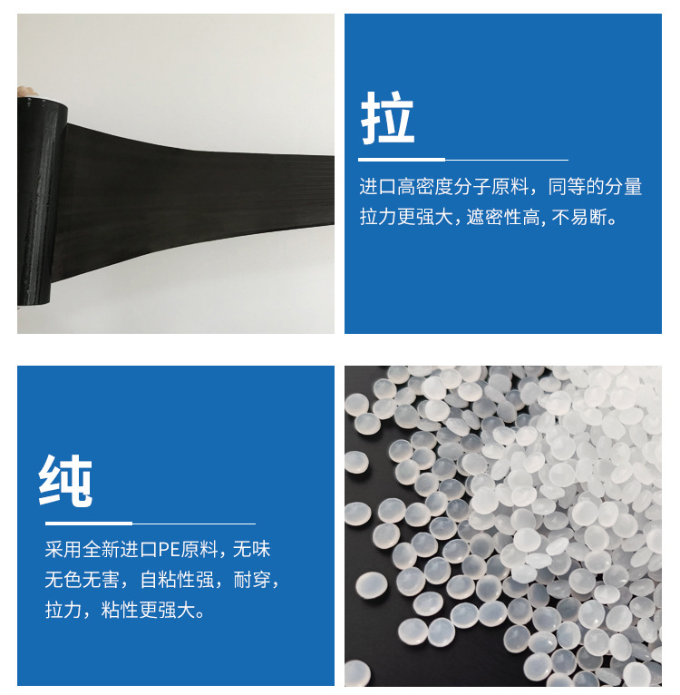 黑色打包缠绕膜厂家包装塑料膜大卷自粘保护薄膜大量工业伸缩打包