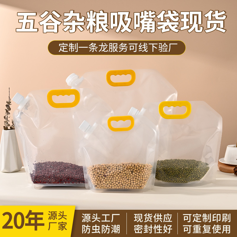 手提透明五谷杂粮防潮吸嘴袋定制斜嘴加厚食品级大米分装 收纳袋子