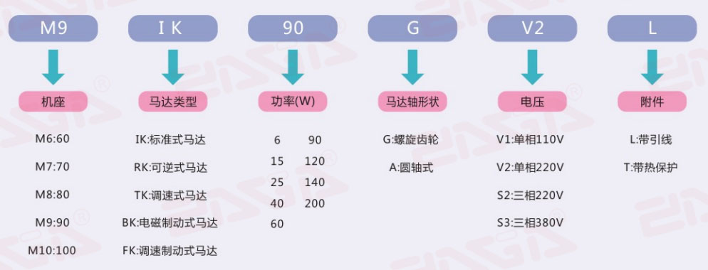 朝岡6~200W多功能减速马达型号的命名