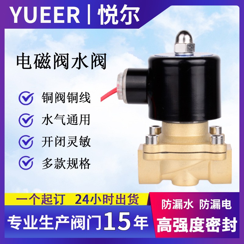 常闭黄铜电磁阀空气水阀防水线圈电子管道控制开关220v24v 4分6分