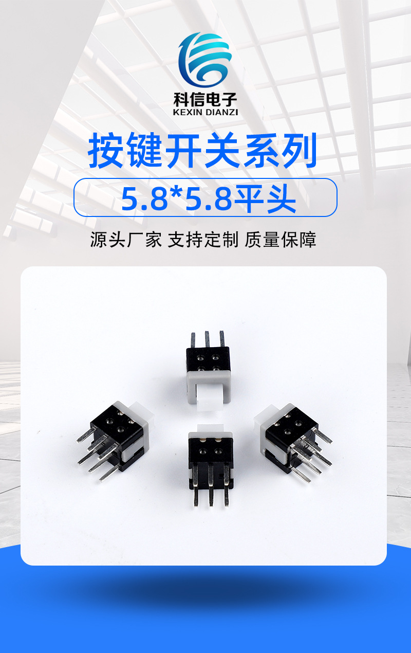 厂家现货5.8*5.8按键开关平头高温自锁直按开关双排六角按键开关