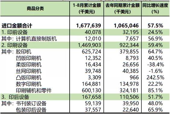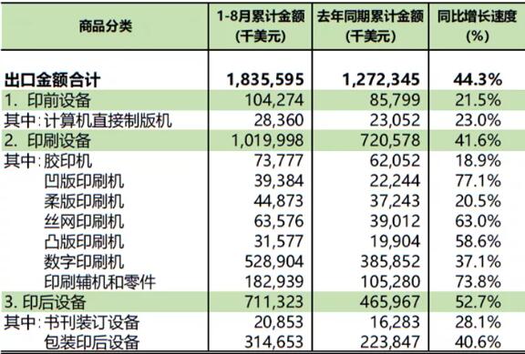 印刷装备进口增长25.9%,出口增长16.6%;
