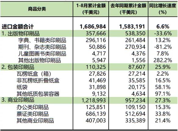 印刷品进口增长1.4%,出口增长11.5%;