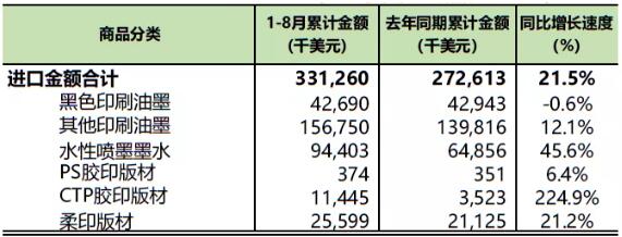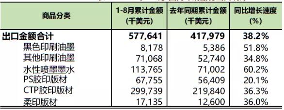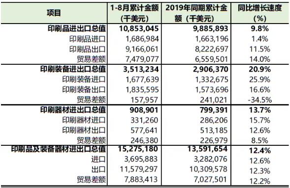 印刷器材进口增长15.6%,出口增长12.6%。