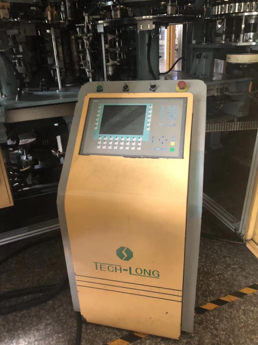 吹瓶机的拉伸部分安装在机台内部,其直接作用部分是等间距排列的拉伸杆。在初始状态下,拉伸杆位于瓶坯的固定头轴线下方,并与模腔中心对齐。吹瓶过程中,拉伸杆快速拉伸,通过瓶坯头轴上的孔进入瓶坯,然后推动瓶坯顶部向上拉伸,帮助瓶坯在高压空气的作用下均匀膨胀成型。根据工艺要求,要求拉伸杆必须动作迅速、定位准确、噪音低、振动小。并且行程和速度可以根据不同的瓶型精确调节。