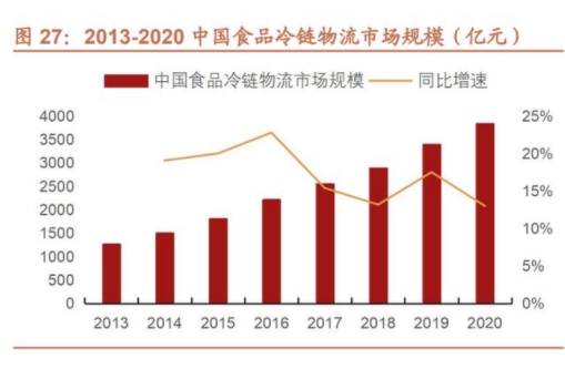 冷链物流发展、购买渠道增多,助力低温白奶崛起。随着冷链物流趋于成熟,食品冷链物流市场规模快速增长, 2020 年达到 3832 亿元,2013-2020 年 CAGR 为 17.22%,有效解决了低温白奶的运输和保鲜难题。过去消费者购 买低温白奶的主要途径为线下商超、预定后企业送奶上门,近几年先后涌现出美团、饿了么等外卖平台,盒马、每 日优鲜等新零售平台,711、全家等连锁便利店,增加了消费者的购买渠道,线上平台成熟的配送体系也节约了奶企 送奶上门的成本。此外,我国居民的饮食观念逐渐从吃饱向吃好转变,低温白奶凭借更好的口感和更多的营养成分, 能够满足消费者对于新鲜健康的需求,叠加冷链物流发展与购买渠道增多,低温白奶已经成为乳制品行业新的增长 点,目前处于快速成长阶段。2015-2019 年,低温白奶销售增速高于常温白奶且处于持续提升过程中,2019 年零售 额同比增长 11.41%至 343 亿元,远高于常温白奶 1.79%的增速,低温白奶销售额占比也由 2014 年的 21.65%提升 至 2019 年的 26.71%,但相比美国、加拿大、日本超过 90%的巴氏奶销售额比例,仍有很大差距。