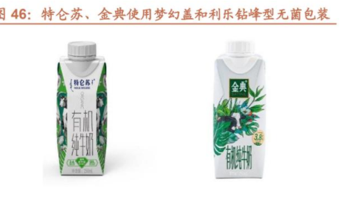 低温白奶与常温白奶的灌装方式和包装物出现融合趋势,利好无菌灌装+塑袋/塑瓶包装。由于低温巴氏奶保质期短, 销售半径小,一部分产品通过使用无菌灌装技术与不透光的塑料包装物延长保质期,扩大销售半径,如天润的鲜牛 乳、蒙牛的每日鲜语等。常温白奶也开始使用透明的塑料袋包装吸引消费者,如近两年炙手可热的“网红小白奶”, 但其本质上是采用 UHT 超高温灭菌后进行无菌灌装的常温白奶。因此无论是常温奶还是低温奶,包装方式都朝着无 菌灌装+塑袋/塑瓶发展,利好有布局的企业。