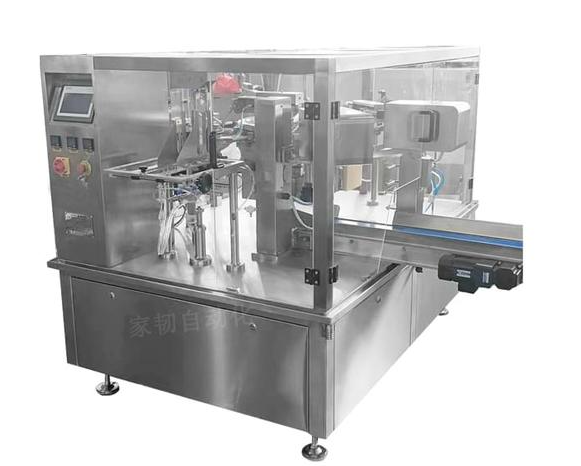 其适用范围极其广泛,可用于纸塑复合、塑塑复合、铝塑复合、PE复合等,包材损耗低,使用的是预制好的包装袋,包装袋图案完美,封口品质好,从而提高了产品档次;还可以一机多用,只需根据不同的物料配套不同的计量装置能实现颗粒、粉末、块状、液体、软罐头、玩具、五金件等产品的全自动包装。