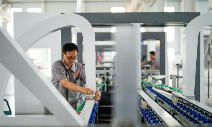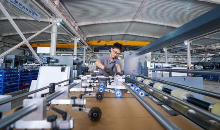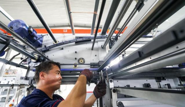 7月13日,河北省玉田县一家印刷包装机械制造企业的工人在生产线上工作。 目前,在河北省玉田县,各家印刷包装机械制造企业正开足马力生产,赶制订单,车间内一片忙碌。 印刷包装机械制造产业是玉田县的传统特色产业。近年来,玉田县投入资金对印刷包装机械制造企业进行技术改造,推动该产业向高端化、智能化发展,引导企业加强科技创新能力,延伸上下游产业链。目前,玉田县已发展印刷包装机械制造产业上下游企业380余家,年产值超120亿元。 新华社记者 牟宇 摄