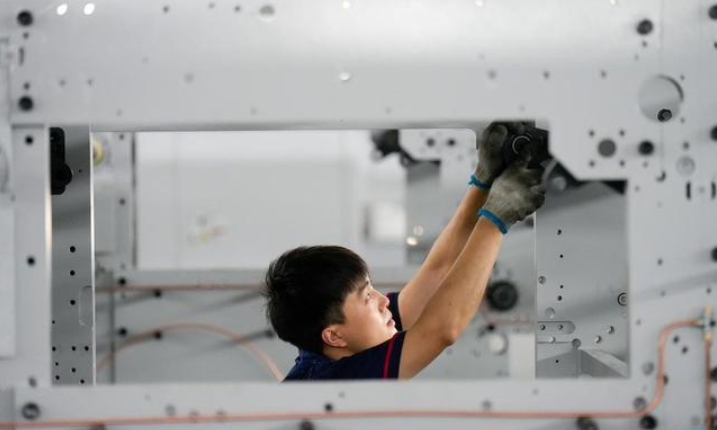 7月13日,河北省玉田县一家印刷包装机械制造企业的工人在安装产品零部件。 目前,在河北省玉田县,各家印刷包装机械制造企业正开足马力生产,赶制订单,车间内一片忙碌。 印刷包装机械制造产业是玉田县的传统特色产业。近年来,玉田县投入资金对印刷包装机械制造企业进行技术改造,推动该产业向高端化、智能化发展,引导企业加强科技创新能力,延伸上下游产业链。目前,玉田县已发展印刷包装机械制造产业上下游企业380余家,年产值超120亿元。 新华社记者 牟宇 摄