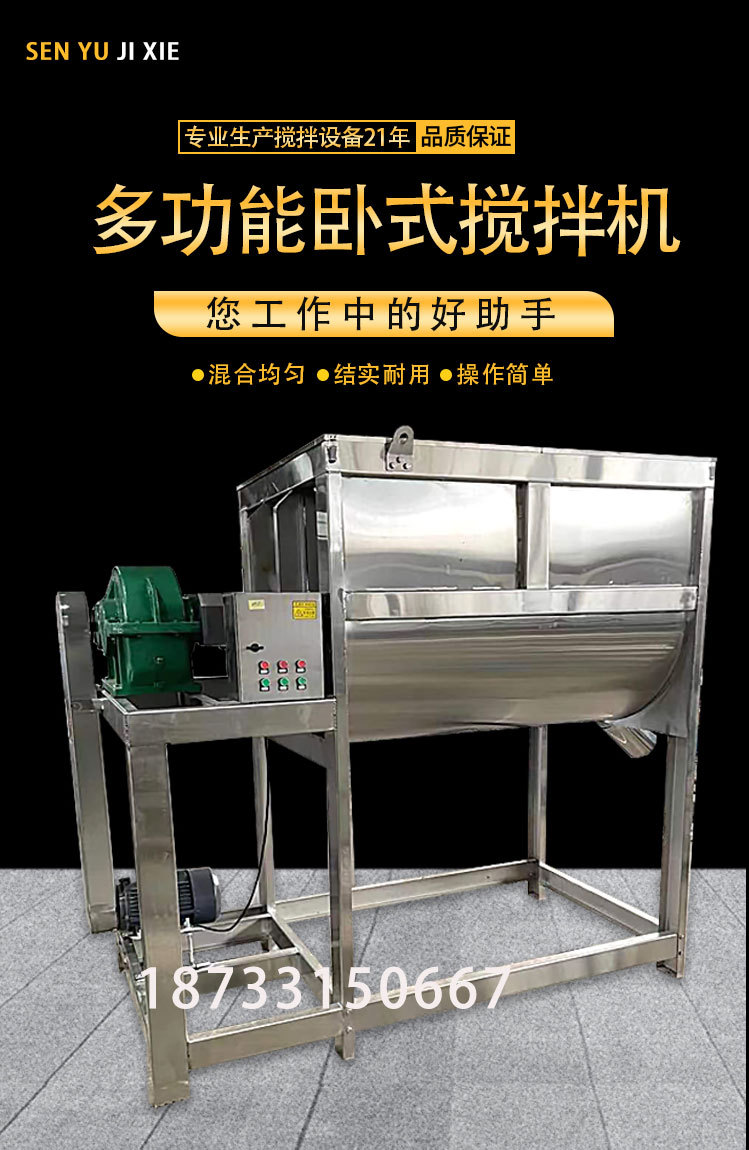 搅拌机由U形容器、搅拌螺带和传动部件组成;螺带状叶片,外层螺旋将物料从两侧向中央汇集,内层螺旋将物料从中央向两侧输送,形成对流混合。搅拌机对于粘性或有凝聚性的粉粒体的混合以及粉粒体中添加不同的粉末及颗粒物料的混合有良好的效果,筒盖可做成全开式门,以便于对设备进行清洗更换产品。混合均匀度高,混合时间快。