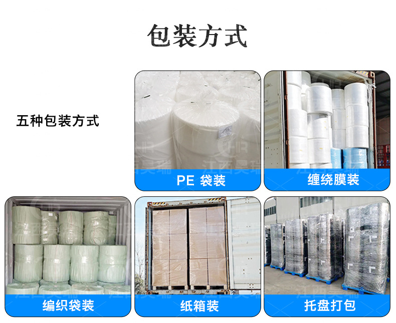 A:常见的有PP(聚丙烯)、PET(涤纶、聚酯纤维)、PE、PA(锦纶、尼龙)、黏胶(纤维素纤维)、木浆(纸浆)、棉花等