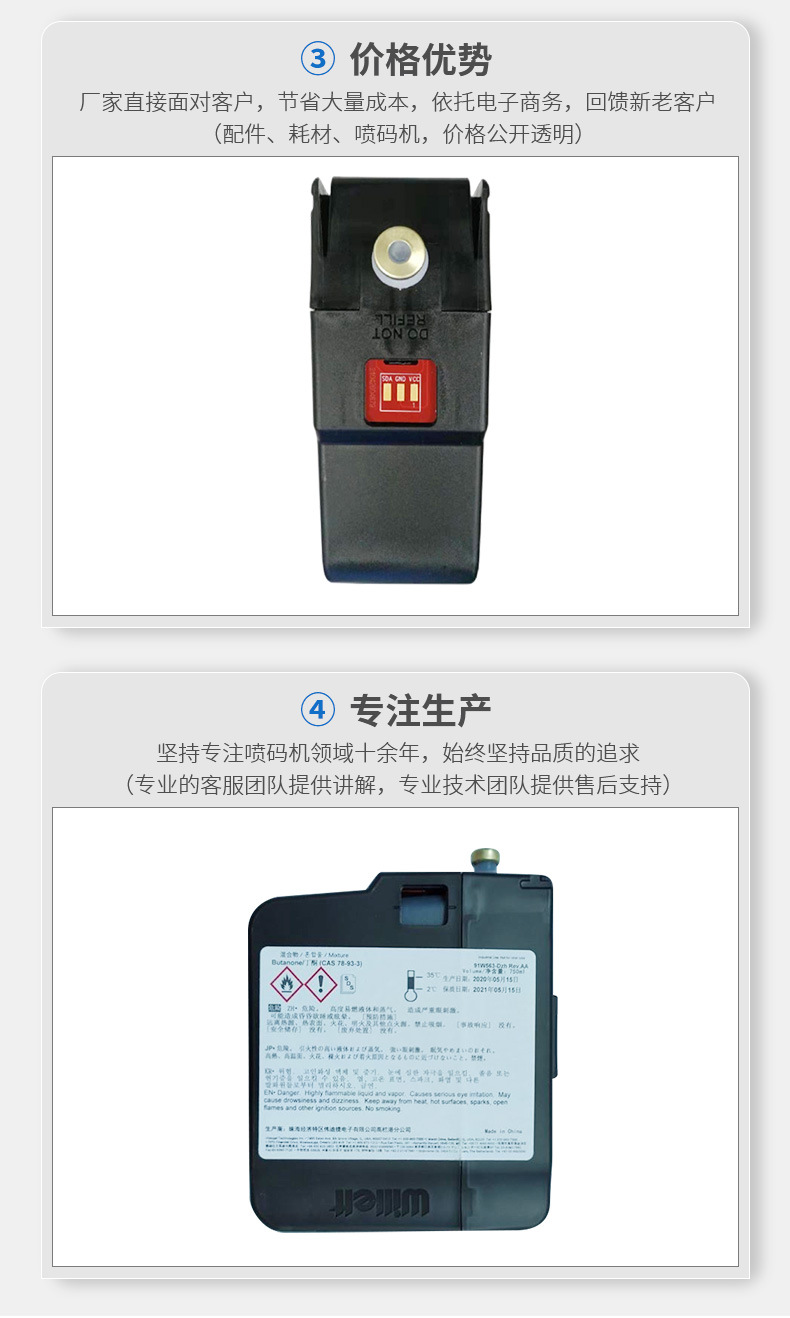 直供威力620喷码机 640 660油墨W563-D墨水墨盒W843-D溶剂稀释剂