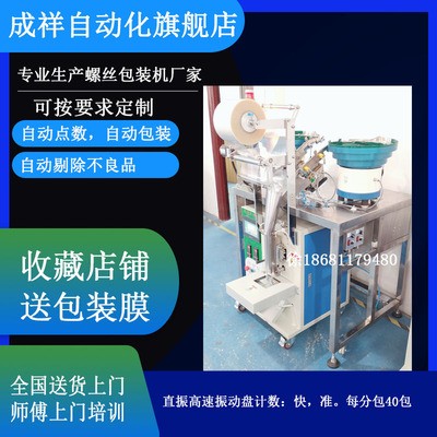 全自动立式螺丝胶钉点数包装机 五金颗粒打包机 2个振动盘计数机