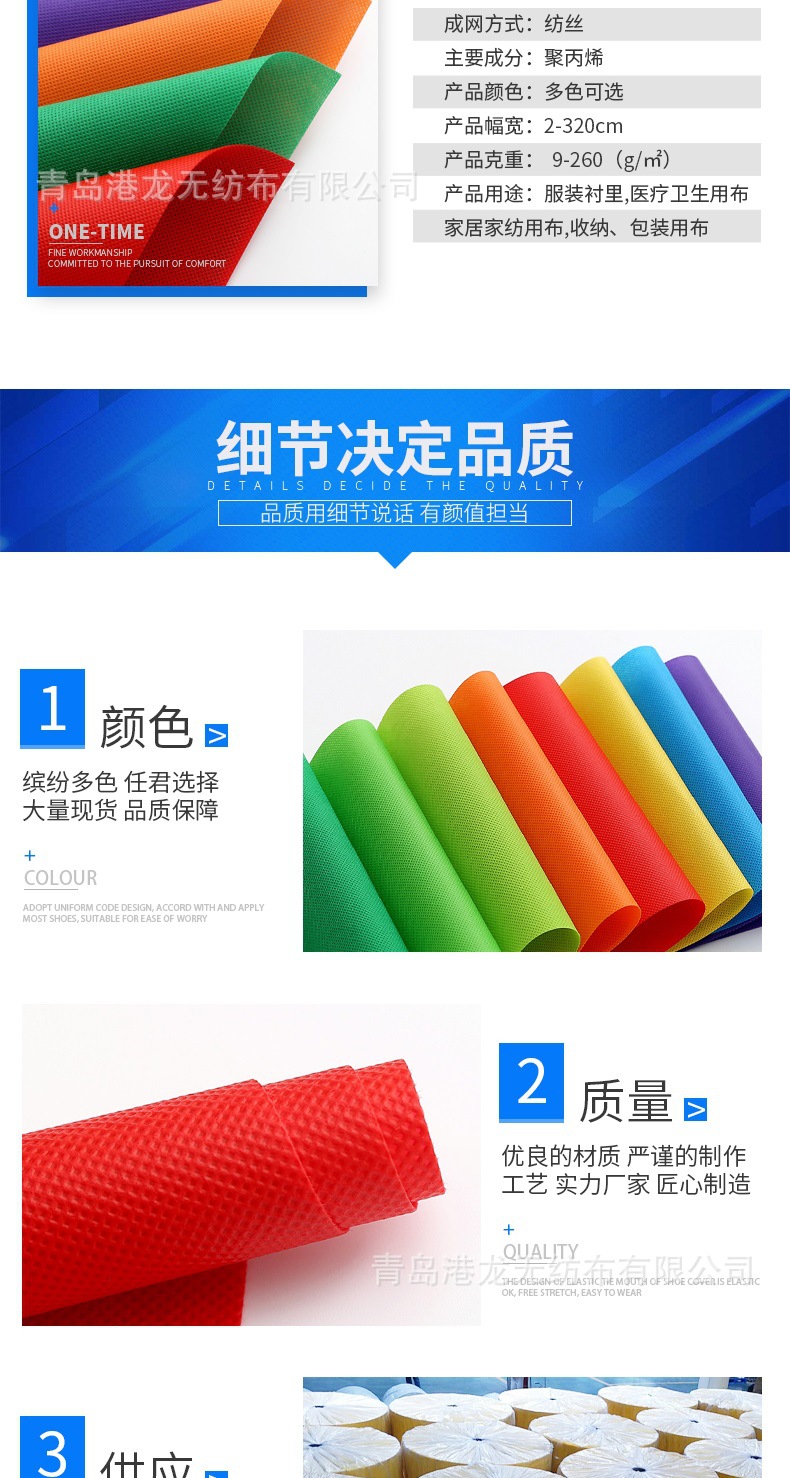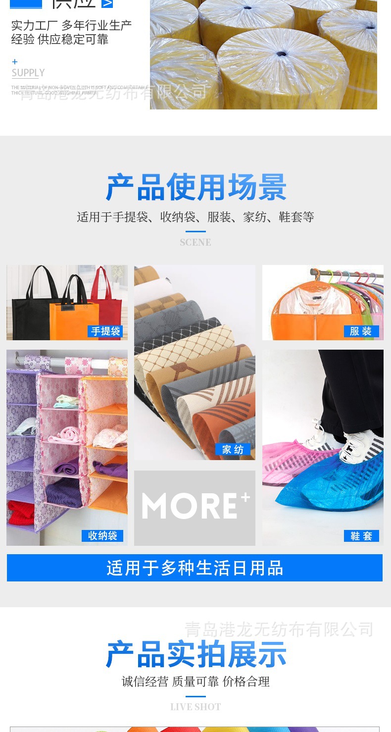 温馨提示:本厂无纺布及制品规格众多,可根据要求生产,支持定制加工量大更优 具体下单价格请与客服联系,宋经理15698111008