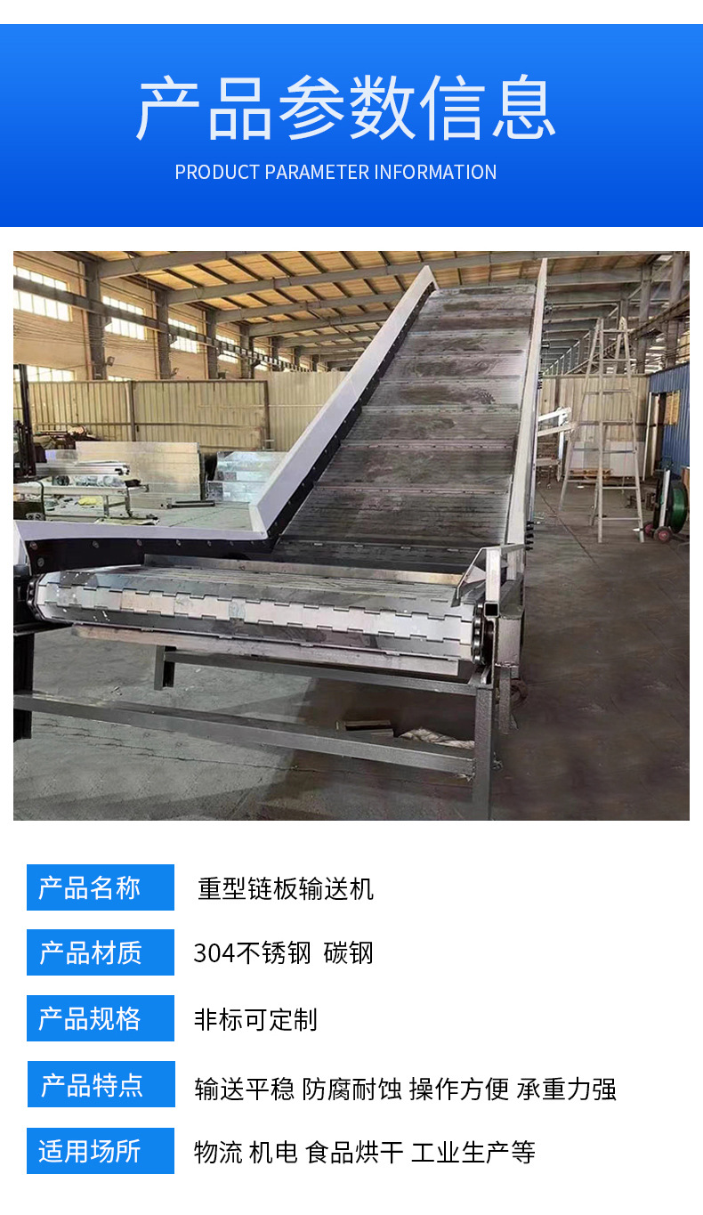 定制重型链板输送机吨包重载货物传送破碎机碳钢链板输送带厂家