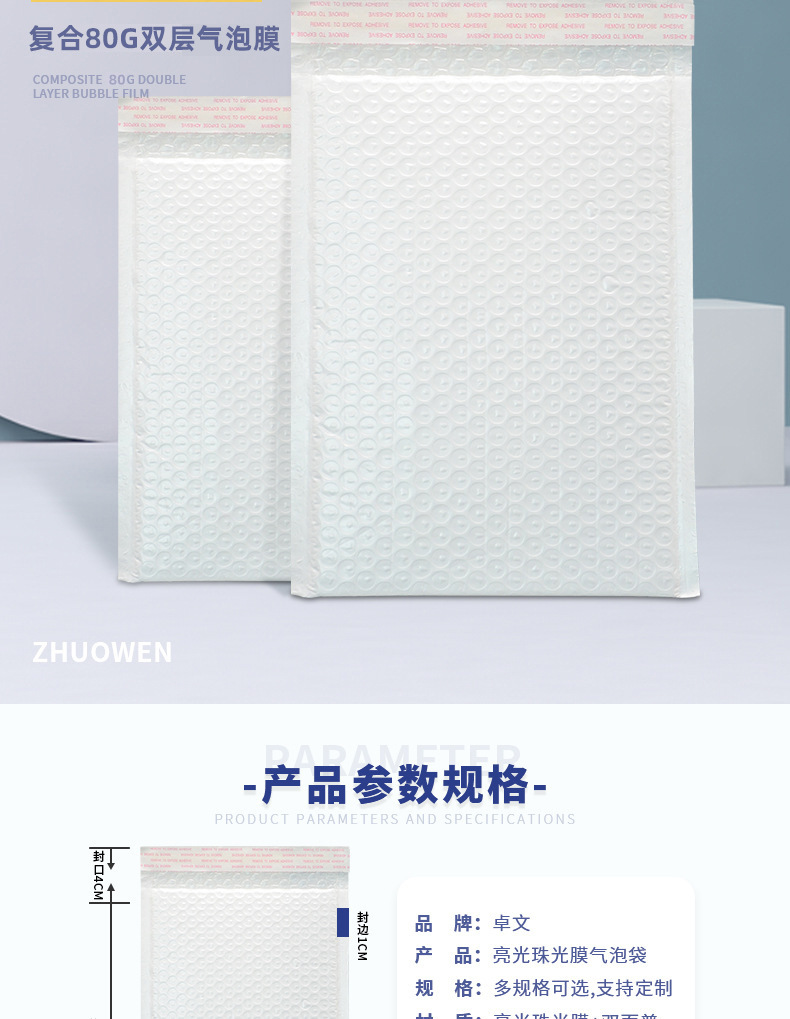 复合珠光膜气泡袋厂家自粘快递服装信封袋批发打包包装白 色泡沫袋