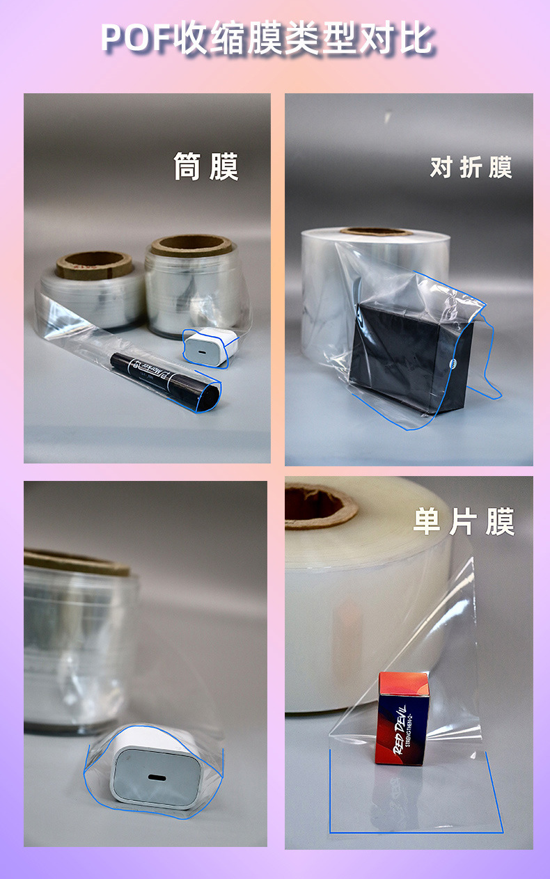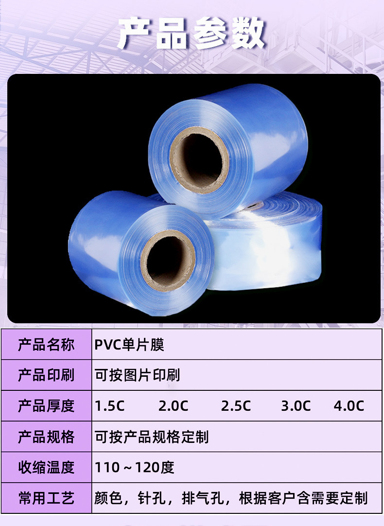 环保PVC收缩膜天蓝色透明热缩塑封膜包装彩盒pvc筒膜单片对折膜
