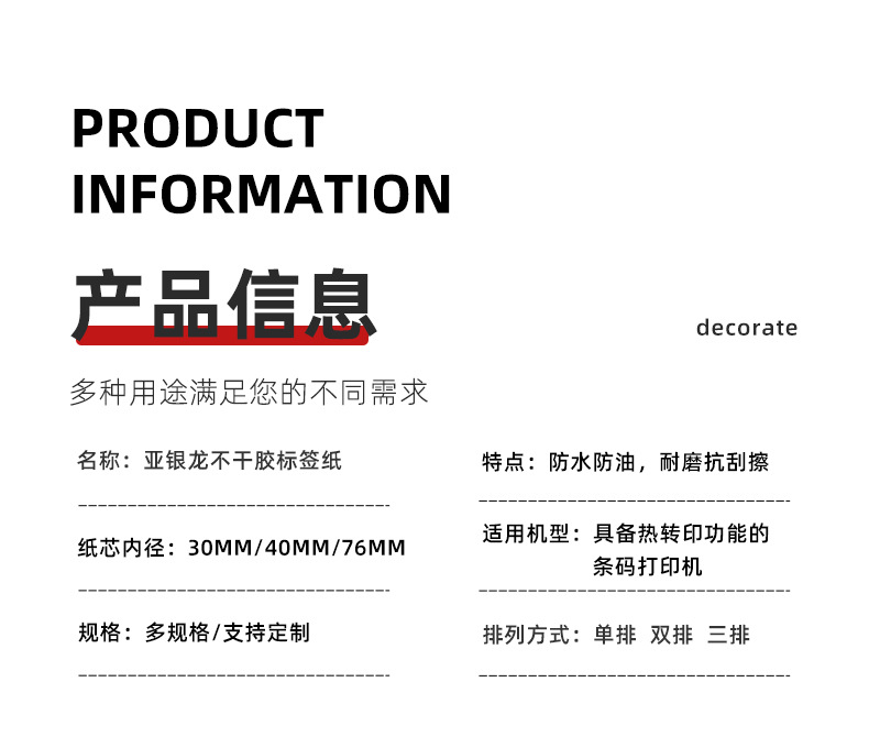 亚银纸不干胶标签纸100 80 60 哑银龙标签贴纸撕不烂条码打印纸