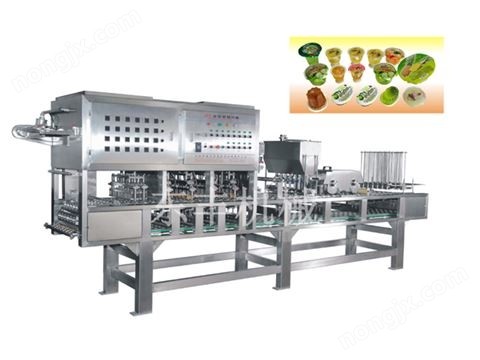 工艺流程:落杯→下果肉→定量充填→放膜→平封口→光电纠偏→线纹封口→剪切→收膜→制品顶出。